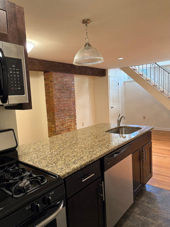Recently updated and well-maintained, this modern bi-level one-bedroom apartment features new hardwood floors and offers a bright, comfortable living space in a central, easily accessible location. The upper level features a welcoming living area with a working fireplace, recessed lighting, and energy-efficient windows that fill the home with natural light. The bedroom offers a large window and generous closet space, while the recently renovated bathroom includes a full-size tub, new tile, modern vanity, mirror, and lighting. Downstairs, a fully equipped kitchen with granite countertops, stainless steel appliances, and a breakfast bar opens to a versatile living area ideal for dining, working, or entertaining. A convenient half bathroom and in-unit washer and dryer complete this thoughtfully designed home.